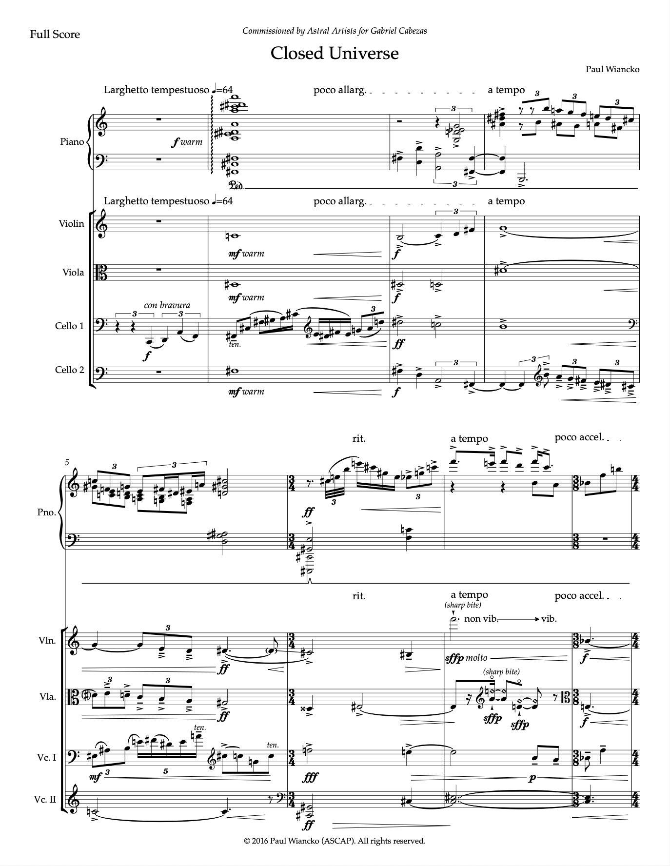 for two violins, viola, and two cellos (23')