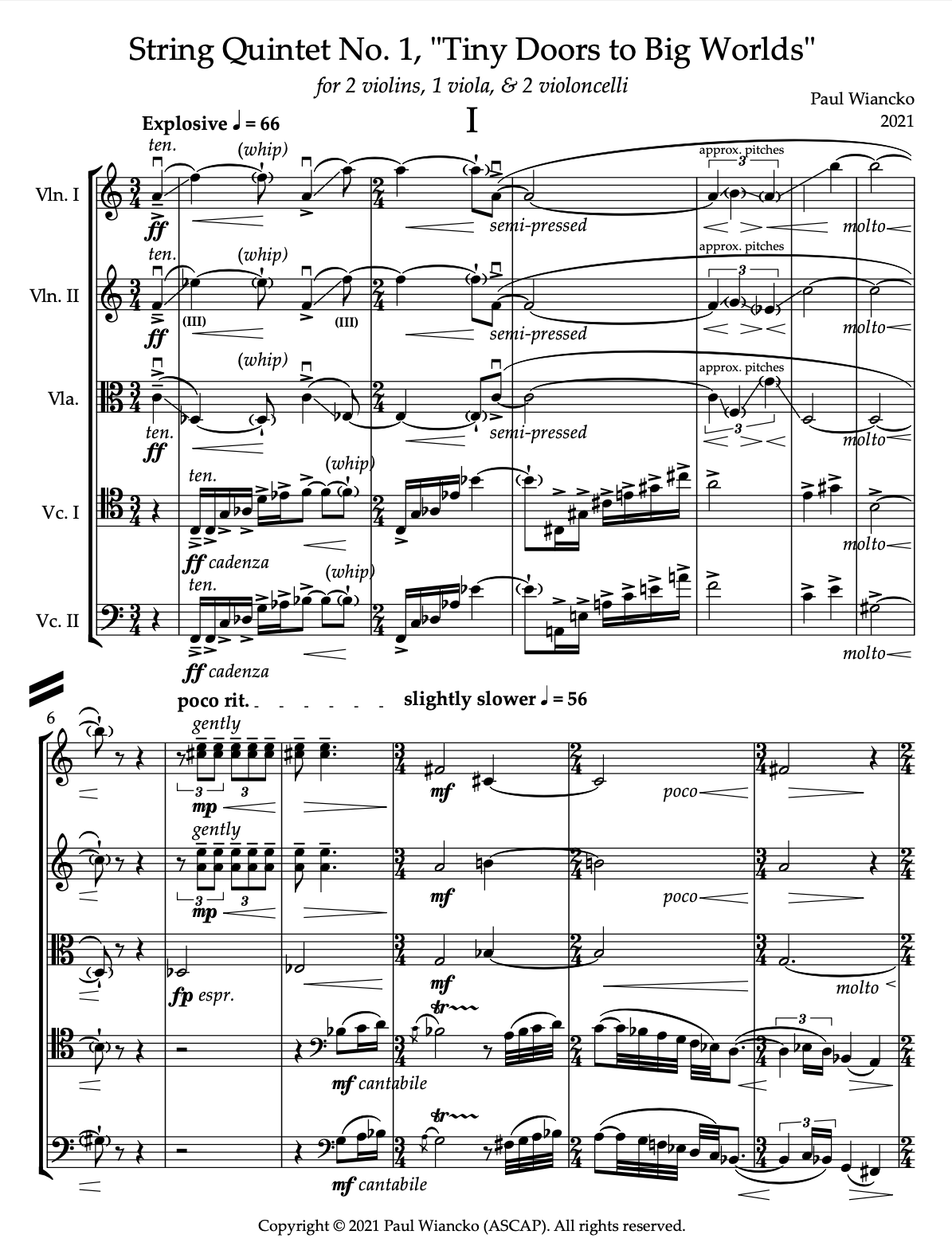 for two violins, viola, and two cellos (23')